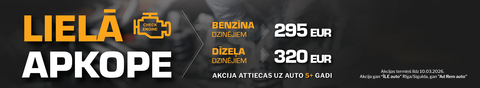 Benzīna dzinējiem: 295 EUR | Dīzeļa dzinējiem: 320 EUR